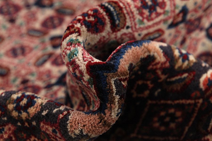 Tapis Mood: La ville Mood se trouve à la province de Khorasan au nord-est d’Iran. Des fouilles archéologiques au sud de la ville historique près de la ville Birjand ont mis au jour des produits en terre cuite qui datent de la dynéstie Parthian (248 av.J.-C. – 224 apr.J.-C.). Aussi des objets d’importance historique qui datent de l’époque préhistorique à l’ époque de la dynastie Safand sont trouvés. La fabrication des tapis et la production de safran a fait la ville connue dans toute la ville. La plupart des tapis Munt a une excellente qualité et ils sont fabriqués par de laine fine et douce et avec des dessins artistiques/ harmonieux. Les tapis Mood sont tissés avec des nœuds asymétriques. (Aussi on les recontre avec le nom Birjand et ils ressemblent assez avec les Meshed). Ils utilisent le bleu profond et le rouge avec le neige par opposition. À leurs dessins ils utilisent surtout des fleurs et des médaillons. Ils utilisent le dessin Mir et le dessin lequel il l’appellent jardin, c’est à des carrés répétitifs décorés avec des arbres, des saules pleureurs, des cerfs et des oiseaux.