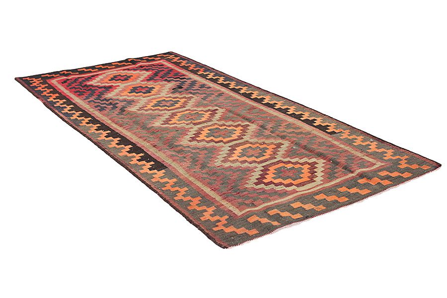 Tapis Kilim: C’est un type prècis du tapis-tissé sans velours (qui est le type précédent de celui avec le velours) et ils sont fabriqués surtout par des nomades en Perse, en Afghanistan, en Turquie et à des régions différentes de Caucasse. Il s’agit des tissés pas de grandes dimensions avec un tissage simple, sans velours. Ils ont comme des caractèristiques des figures géometriques et des associations des couleurs très riches. Des matières naturelles comme la laine sont utilisés pour le tissage et quelquefois aussi la soie pour les kilims plus legers et plus fins. Le chromatisme du fil est fait par des plantes et des métaux qui donnent de beaux nuances naturels. La tradition séculaire des kilims se perd aux siècles aux nomades d’Asie centrale. D’abord, les kilims étaient surtout des articles d’utilisation domestique et plus tard sont devenus des produits commercialisables en suivant les meilleurs techniques de la tapisserie d’ est pendant le 16ième et le 17ième siècle. Ils ont aussi plusieurs utilisations et ils peuvent être utilisés au plancher comme des couvertures ou pour décoration aux murs. Le nom Kilim vient du mot persan gelim. Ils s’appellent Berr en kurde. Les plus fameux kilims persans sont les kilims Sumakh, Senneh, Fars et Ghashghai. Des kilims afghans sont les kilims Golbariasta, Maimane, Taimani, Maliki e.t.c Plusiers kilims sont tissés aussi aux frontières entre la Perse et l’Afghanistan par des nomades de Balouch avec les couleurs foncées de Terre.