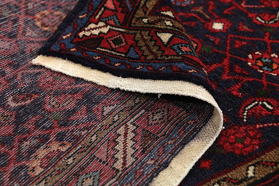 Tapis Hamadan: La ville de Hamadan se trouve au nord-ouest d’Iran à 3ookm ouest de Teheran. C’est une de plus anciennes villes du monde et la sainte Bible se référe à cette ville avec le nom Ekvanata. La ville est un lieu de concentration et de commerce des tapis qui sont tissés à certains villages et villes voisins. Plusieurs tapis se sont vendus avec leurs propres noms par exemple Nahavand, Tuiserkan, Malayer, Hosseinabad, Burchalow, Enjilas, Lilihan, Khamse et Zanjan. Les plus simples tapis de la région sont vendus avec le nom Hamadan. Chaque village a son tissage pour les tapis avec ses dessins et ses couleurs. Une laine de très bonne qualité est utilisée à la plupart des tapis Hamadan à des couleurs différentes. Les couleurs sont naturelles et dominent des nuances différentes du bleu indigo et avec des nuances du rouge.
