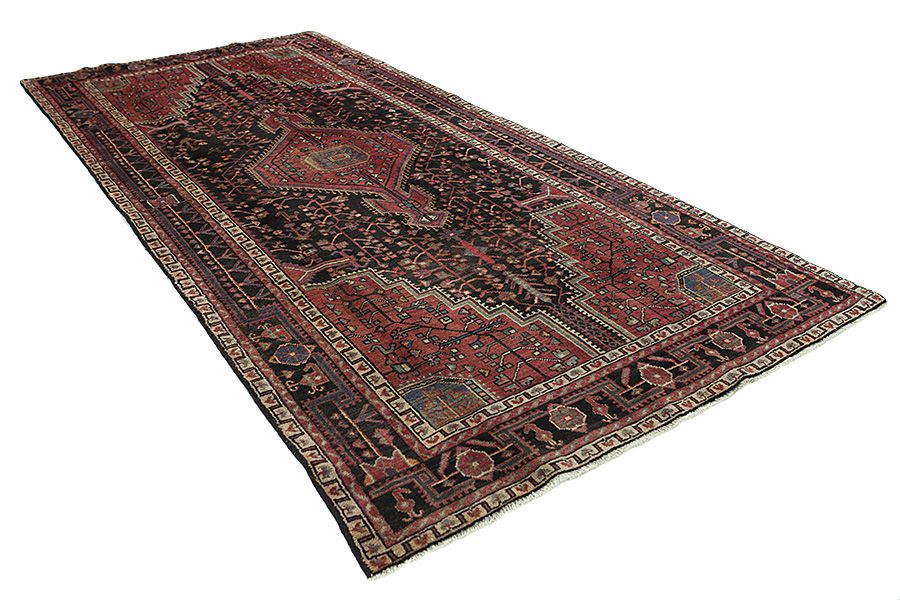 Tapis Hamadan: La ville de Hamadan se trouve au nord-ouest d’Iran à 3ookm ouest de Teheran. C’est une de plus anciennes villes du monde et la sainte Bible se référe à cette ville avec le nom Ekvanata. La ville est un lieu de concentration et de commerce des tapis qui sont tissés à certains villages et villes voisins. Plusieurs tapis se sont vendus avec leurs propres noms par exemple Nahavand, Tuiserkan, Malayer, Hosseinabad, Burchalow, Enjilas, Lilihan, Khamse et Zanjan. Les plus simples tapis de la région sont vendus avec le nom Hamadan. Chaque village a son tissage pour les tapis avec ses dessins et ses couleurs. Une laine de très bonne qualité est utilisée à la plupart des tapis Hamadan à des couleurs différentes. Les couleurs sont naturelles et dominent des nuances différentes du bleu indigo et avec des nuances du rouge.