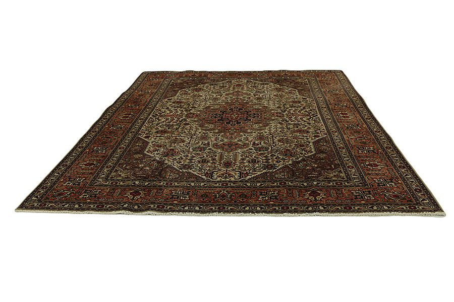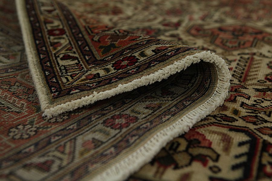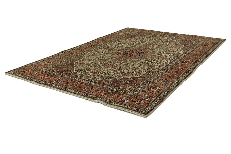 Tapis Tabriz: La ville Tabriz est la capitale de la province Azerbaïjan au sud-ouest d’Iran. Jusqu’à la fin de l’époque des caravanes Tabriz était le centre le plus important du commerce et du tissage des tapis. Par ici l’Ouest s’approvisionnait les chefs d’œuvres que des tisseurs renommés et capables tissent. Leurs qualités élevées ont fait les tapis connus aux marchés internationaux. Des atéliers des tapis noués à la main ont été crées où ils tissent de vieux et de nouveaux dessins avec une très grande densité en nœuds avec des matériaux de qualité excellente. La soie et la laine qualintative fine font les tapis de première classe. C’est la seule ville de Perse qui produit un si grand volume et et une si grande variété des tapis. Les tapis Tabriz sont impossants et ils ont leur style et leur originalité avec ou sans médaillon, avec des dessins pleins de l’imagination et de l’unicité des fleurs, des répresentations, des strophes, des poèmes à des couleurs comme le beige, le bleu et le rouge
