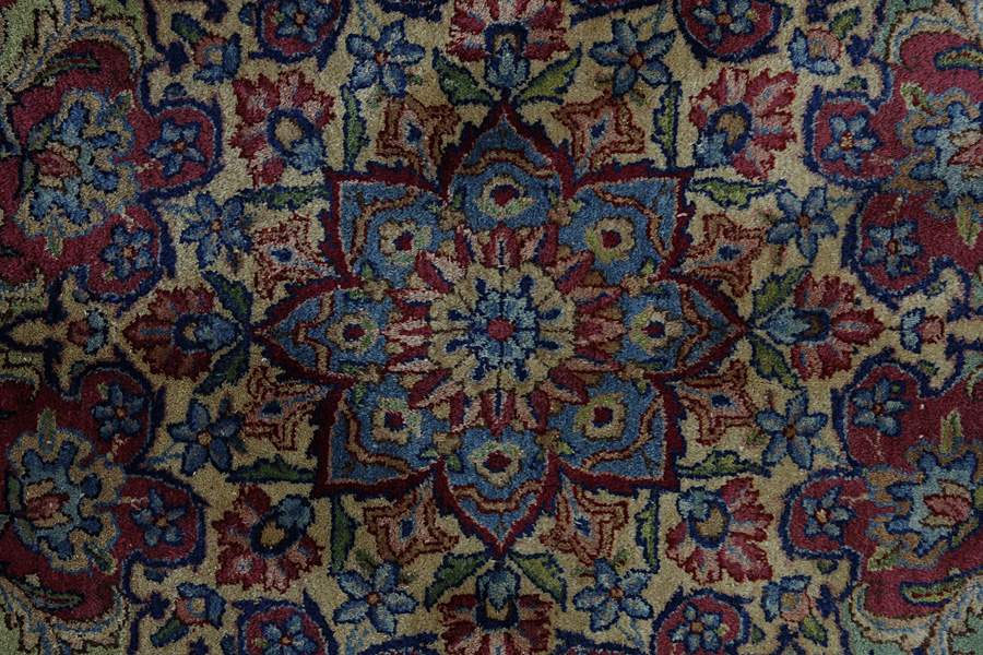 Tapis Kirman: Le tissage des tapis qui est une vieille tradition à Kerman est une de principales industries de la ville. Les tapis qui sont produits à la ville sont connus dans tout le monde. Le plus vieux tapis qui est trouvé à Kerman date avant 500 années, évenement qui prouve la superiorité des tapis qui sont tissus ici. Aussi des écharpes et des tissus fins et d’autres produits textiles de laine ou de coton sont fabriqués comme au passé. Quand en 1271 Marko Polo a visité la ville Kerman, elle est devenue un centre commercial et a lié le golf Persique avec Khorasan et l’Asie centrale. Pendant la dynastie de Sarafides, des tapis sont exportés en Angleterre et en Allemagne. Le succès des tapis Kerman est dû à l’événement que les tisseurs ont crée des dessins plus riches en ayant comme modèle, les tapis –aubusson. Leurs caractèristiques sont les couleurs brillantes et la multitude des fleurs avec des guirlantes et des médaillons. Les laines à la région Kerman sont des laines de grande qualité en graisse qui les font très brillants.