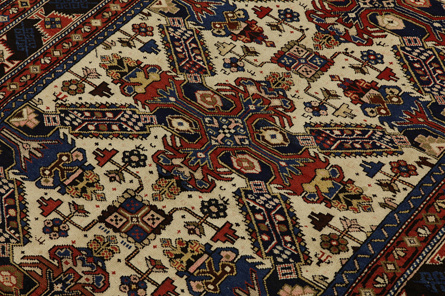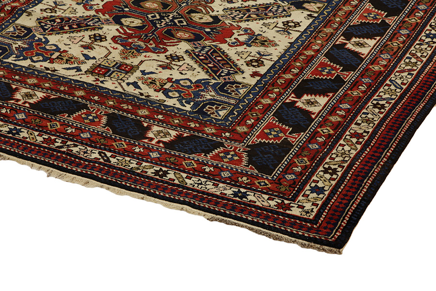 Tapis Shirvan: Le tapis Shirvan est noué en Azerbaïdjan et il est considéré d’être un des plus bons tapis de Caucase. Les tapis Shirvan sont très fins et densement noués avec beaucoup de petits médaillons étant l’un à côté de l’autre au centre du tapis avec des motifs géométriques. Des étoiles, des losanges et de petites figures sont quelques caractéristiques des tapis Shirvan. La couleur majeure de ces tapis est dans la plupart des cas le rouge ou le bleu alors que la laine de la plus large bordure est blanche en gardant sa couleur naturelle.