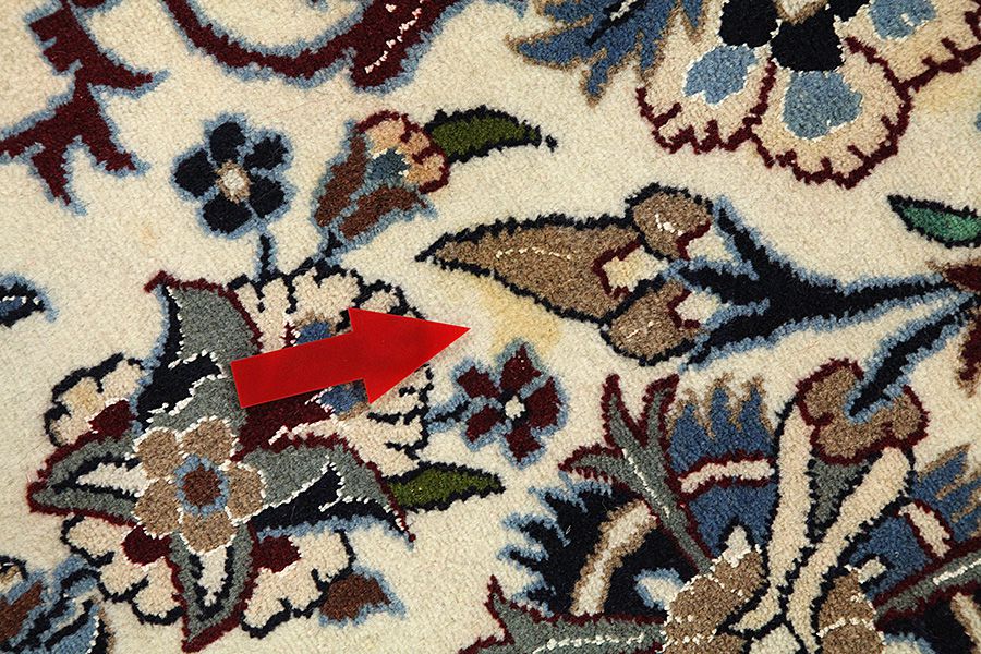 • Note importante: La couleur du tapis a été déteinte à une petite partie du velours.
