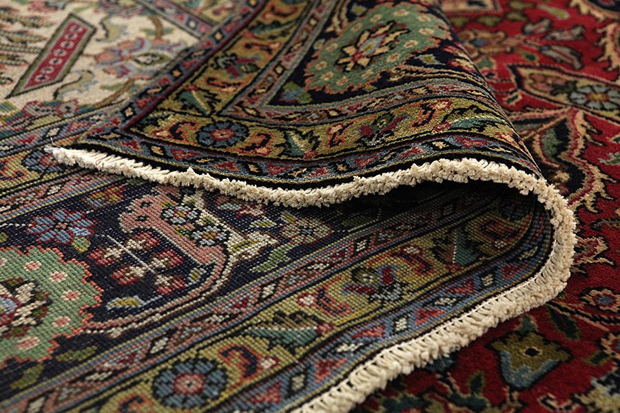 Tapis Tabriz: La ville Tabriz est la capitale de la province Azerbaïjan au sud-ouest d’Iran. Jusqu’à la fin de l’époque des caravanes Tabriz était le centre le plus important du commerce et du tissage des tapis. Par ici l’Ouest s’approvisionnait les chefs d’œuvres que des tisseurs renommés et capables tissent. Leurs qualités élevées ont fait les tapis connus aux marchés internationaux. Des atéliers des tapis noués à la main ont été crées où ils tissent de vieux et de nouveaux dessins avec une très grande densité en nœuds avec des matériaux de qualité excellente. La soie et la laine qualintative fine font les tapis de première classe. C’est la seule ville de Perse qui produit un si grand volume et et une si grande variété des tapis. Les tapis Tabriz sont impossants et ils ont leur style et leur originalité avec ou sans médaillon, avec des dessins pleins de l’imagination et de l’unicité des fleurs, des répresentations, des strophes, des poèmes à des couleurs comme le beige, le bleu et le rouge