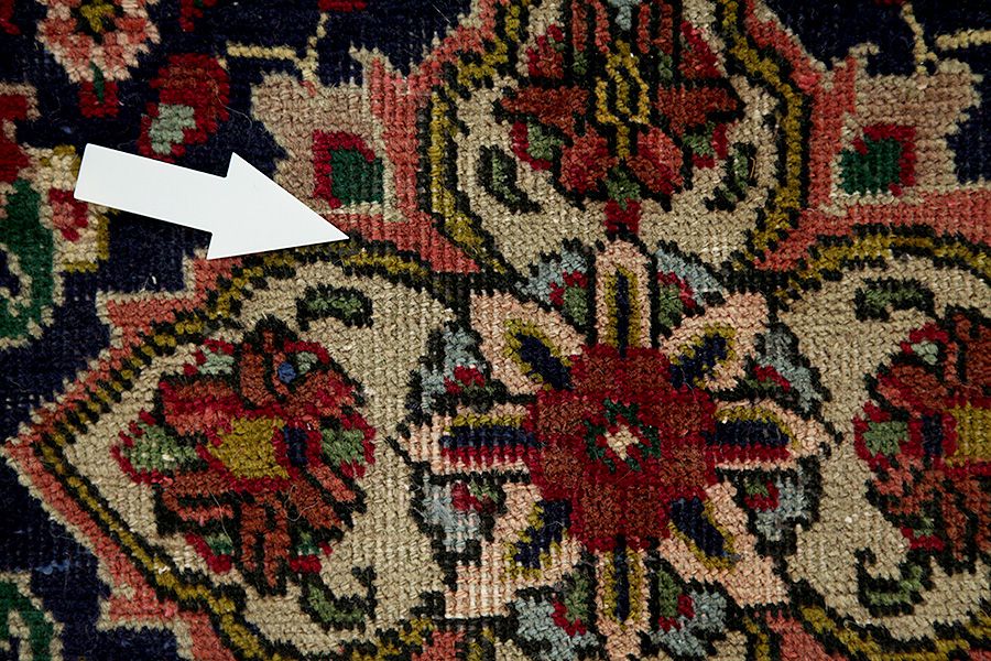 Tapis Abrash: Grâce à leur graisse différente de la laine et la quantité différente du sel pendant le processus de la teinture la laine a une différence absorptivité en ce qui concerne la qualité du couleur. Avant le tissage ce résultat n’est pas visible. Pendant le tissage des séries des nuances de la même couleur sont produits. On appelle cela "Abrash" et il nous montre que les laines ne sont pas traitées avec des matériels chimiques et ils sont laissés à montrer leur aspect naturel et leur originalité. Exemples