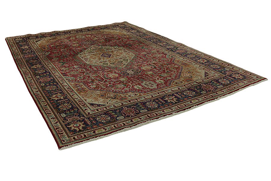 Tapis Tabriz: La ville Tabriz est la capitale de la province Azerbaïjan au sud-ouest d’Iran. Jusqu’à la fin de l’époque des caravanes Tabriz était le centre le plus important du commerce et du tissage des tapis. Par ici l’Ouest s’approvisionnait les chefs d’œuvres que des tisseurs renommés et capables tissent. Leurs qualités élevées ont fait les tapis connus aux marchés internationaux. Des atéliers des tapis noués à la main ont été crées où ils tissent de vieux et de nouveaux dessins avec une très grande densité en nœuds avec des matériaux de qualité excellente. La soie et la laine qualintative fine font les tapis de première classe. C’est la seule ville de Perse qui produit un si grand volume et et une si grande variété des tapis. Les tapis Tabriz sont impossants et ils ont leur style et leur originalité avec ou sans médaillon, avec des dessins pleins de l’imagination et de l’unicité des fleurs, des répresentations, des strophes, des poèmes à des couleurs comme le beige, le bleu et le rouge