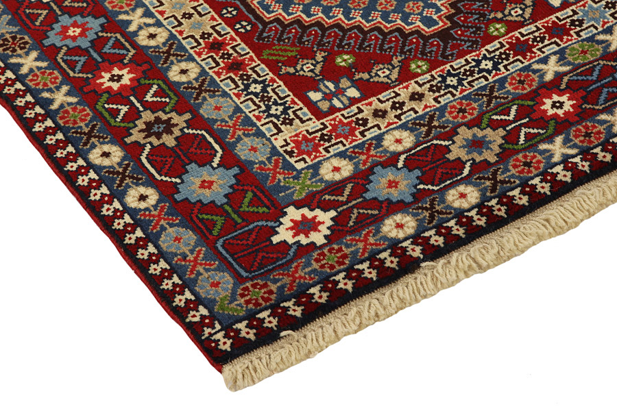 Tapis Yalameh: Yalameh s’appellent les tapis qui sont noués par les Nomades Yalameh qui vivent dans la province de Fars au sud de Perse. Les couleurs sont dans la plupart des fois le rouge, le bleu foncé, le brun et l’orange. Ils utilisent de la laine très douce. Leurs motifs sont caractéristiques avec des médaillons grands qui se répètent aux motifs géométriques et des motifs d’animaux et humains au long de la surface du tapis. Les tapis Yalameh ressemblent aux tapis Shiraz.