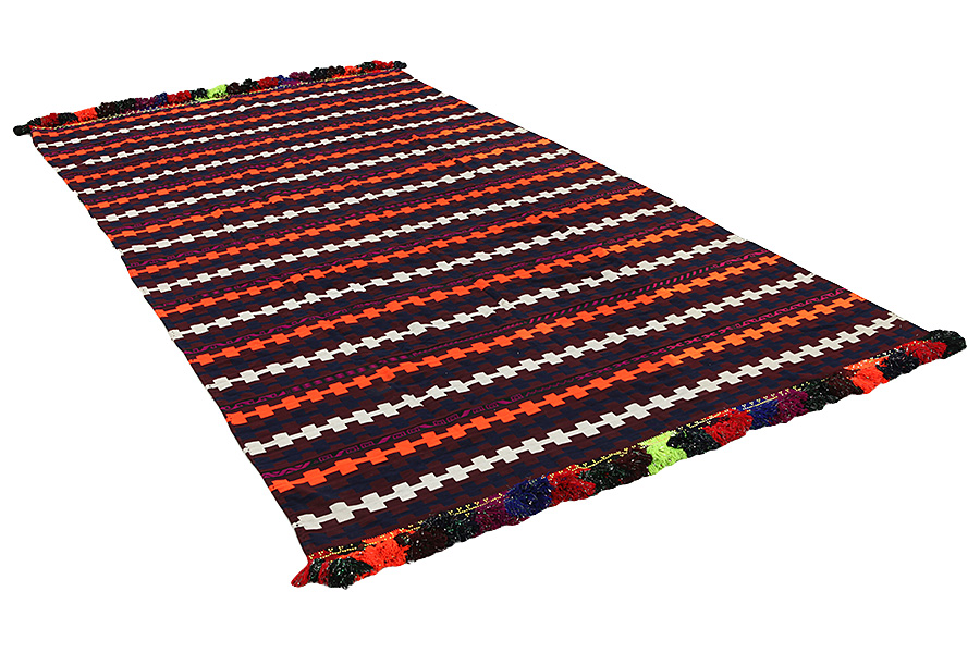 Kilim: C’est le type du tissé sans tissage qui est précedent du tapis avec du tissage et surtout des nomades le fabriquent. Plusiers fois il n’y a pas de bon côté ou de mauvais côté et il peut être déroulé aussi par tous les deux côtés du tapis.