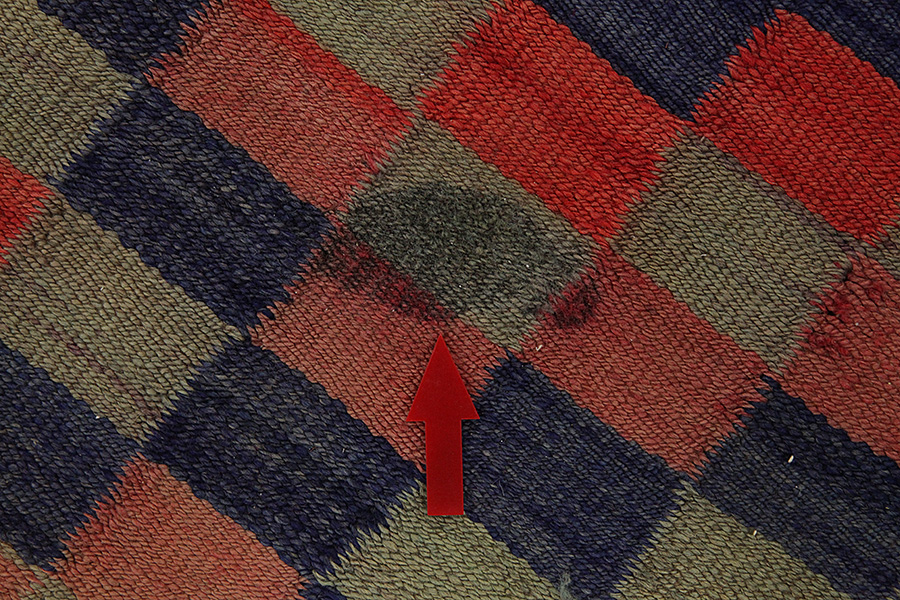 • Note importante: La couleur du tapis a été déteinte à une petite partie du velours.