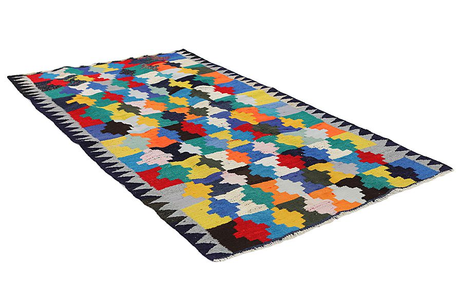 Tapis Kilim: C’est un type prècis du tapis-tissé sans velours (qui est le type précédent de celui avec le velours) et ils sont fabriqués surtout par des nomades en Perse, en Afghanistan, en Turquie et à des régions différentes de Caucasse. Il s’agit des tissés pas de grandes dimensions avec un tissage simple, sans velours. Ils ont comme des caractèristiques des figures géometriques et des associations des couleurs très riches. Des matières naturelles comme la laine sont utilisés pour le tissage et quelquefois aussi la soie pour les kilims plus legers et plus fins. Le chromatisme du fil est fait par des plantes et des métaux qui donnent de beaux nuances naturels. La tradition séculaire des kilims se perd aux siècles aux nomades d’Asie centrale. D’abord, les kilims étaient surtout des articles d’utilisation domestique et plus tard sont devenus des produits commercialisables en suivant les meilleurs techniques de la tapisserie d’ est pendant le 16ième et le 17ième siècle. Ils ont aussi plusieurs utilisations et ils peuvent être utilisés au plancher comme des couvertures ou pour décoration aux murs. Le nom Kilim vient du mot persan gelim. Ils s’appellent Berr en kurde. Les plus fameux kilims persans sont les kilims Sumakh, Senneh, Fars et Ghashghai. Des kilims afghans sont les kilims Golbariasta, Maimane, Taimani, Maliki e.t.c Plusiers kilims sont tissés aussi aux frontières entre la Perse et l’Afghanistan par des nomades de Balouch avec les couleurs foncées de Terre.