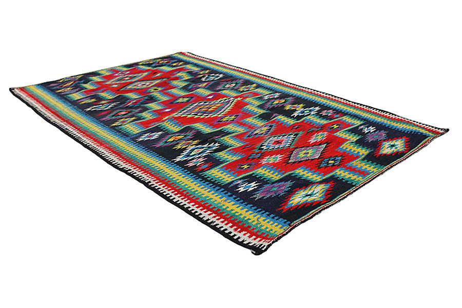Tapis Kilim: C’est un type prècis du tapis-tissé sans velours (qui est le type précédent de celui avec le velours) et ils sont fabriqués surtout par des nomades en Perse, en Afghanistan, en Turquie et à des régions différentes de Caucasse. Il s’agit des tissés pas de grandes dimensions avec un tissage simple, sans velours. Ils ont comme des caractèristiques des figures géometriques et des associations des couleurs très riches. Des matières naturelles comme la laine sont utilisés pour le tissage et quelquefois aussi la soie pour les kilims plus legers et plus fins. Le chromatisme du fil est fait par des plantes et des métaux qui donnent de beaux nuances naturels. La tradition séculaire des kilims se perd aux siècles aux nomades d’Asie centrale. D’abord, les kilims étaient surtout des articles d’utilisation domestique et plus tard sont devenus des produits commercialisables en suivant les meilleurs techniques de la tapisserie d’ est pendant le 16ième et le 17ième siècle. Ils ont aussi plusieurs utilisations et ils peuvent être utilisés au plancher comme des couvertures ou pour décoration aux murs. Le nom Kilim vient du mot persan gelim. Ils s’appellent Berr en kurde. Les plus fameux kilims persans sont les kilims Sumakh, Senneh, Fars et Ghashghai. Des kilims afghans sont les kilims Golbariasta, Maimane, Taimani, Maliki e.t.c Plusiers kilims sont tissés aussi aux frontières entre la Perse et l’Afghanistan par des nomades de Balouch avec les couleurs foncées de Terre.
