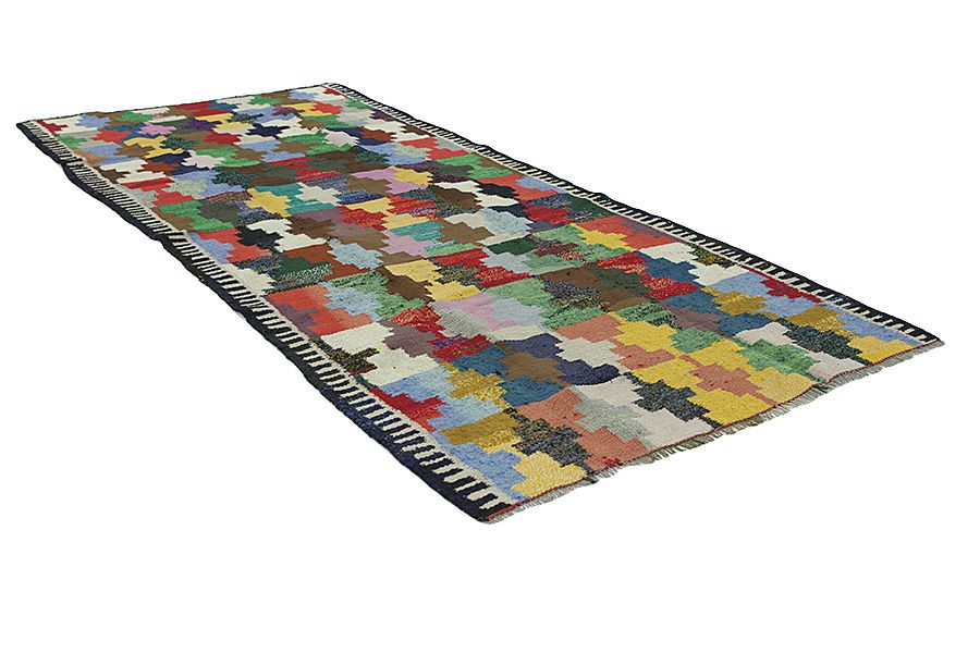 Tapis Kilim: C’est un type prècis du tapis-tissé sans velours (qui est le type précédent de celui avec le velours) et ils sont fabriqués surtout par des nomades en Perse, en Afghanistan, en Turquie et à des régions différentes de Caucasse. Il s’agit des tissés pas de grandes dimensions avec un tissage simple, sans velours. Ils ont comme des caractèristiques des figures géometriques et des associations des couleurs très riches. Des matières naturelles comme la laine sont utilisés pour le tissage et quelquefois aussi la soie pour les kilims plus legers et plus fins. Le chromatisme du fil est fait par des plantes et des métaux qui donnent de beaux nuances naturels. La tradition séculaire des kilims se perd aux siècles aux nomades d’Asie centrale. D’abord, les kilims étaient surtout des articles d’utilisation domestique et plus tard sont devenus des produits commercialisables en suivant les meilleurs techniques de la tapisserie d’ est pendant le 16ième et le 17ième siècle. Ils ont aussi plusieurs utilisations et ils peuvent être utilisés au plancher comme des couvertures ou pour décoration aux murs. Le nom Kilim vient du mot persan gelim. Ils s’appellent Berr en kurde. Les plus fameux kilims persans sont les kilims Sumakh, Senneh, Fars et Ghashghai. Des kilims afghans sont les kilims Golbariasta, Maimane, Taimani, Maliki e.t.c Plusiers kilims sont tissés aussi aux frontières entre la Perse et l’Afghanistan par des nomades de Balouch avec les couleurs foncées de Terre.