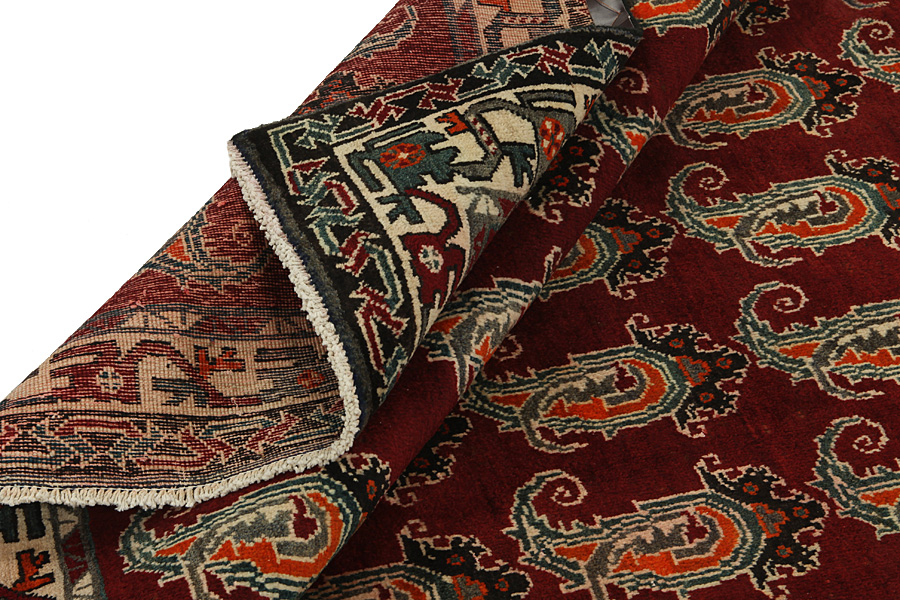 Tapis Qashqai: Les tapis Qashqai sont tissés par des nomades qui vivent à des régions montegnardes de Perse aux provinces de Fars, Kuzestan, au sud d’Isfahan et autour de la région de la ville Shiraz. Les tapis ont une grande densité en nœuds et une grande variété de dessins et en utilisant surtout le rouge profond et le bleu. Ils tissent des tapis, des kilims et des tissus décoratifs (des rubans, des sacs e.t.c) dans lesquels ils répresentent des instantanés de leur vie avec des représentations des hommes des animaux, des arbres et des fleurs. Aussi ils representent des images par des monuments historiques, surtout de Persepolis. Ils savent des dessins différents par cœur et ils tissent librement sans la contrainte sévère d’un dessin illustré.