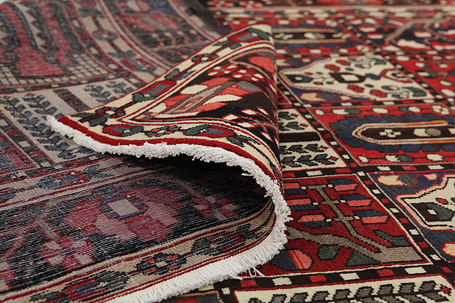 Tapis Bakhtiari: Les nomades Bakhtiar habitent dans les montagnes Zagros à l’ouest de la ville d’Isfahan autour de la ville de Shar-e-kurd. Leurs tapis sont connus pour leurs dessins de différents carrés répétitifs dans lesquels sont représentés des fleurs ou des animaux, d’où l’origine du nom de ce motif « jardin » (Khesti). Leurs tapis sont aussi très résistants avec un tissage en laine perse de très bonne qualité issue de moutons élevés en haute altitude. Les meilleurs tapis Bakhtiar avec la meilleure densité de nœuds sont les Bibibaff.