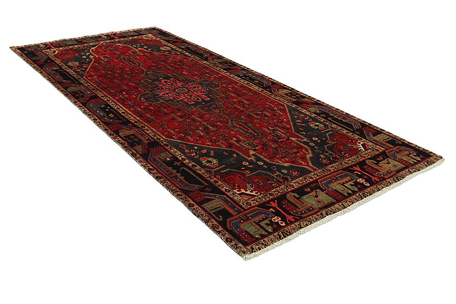 Tapis Hamadan: La ville de Hamadan se trouve au nord-ouest d’Iran à 3ookm ouest de Teheran. C’est une de plus anciennes villes du monde et la sainte Bible se référe à cette ville avec le nom Ekvanata. La ville est un lieu de concentration et de commerce des tapis qui sont tissés à certains villages et villes voisins. Plusieurs tapis se sont vendus avec leurs propres noms par exemple Nahavand, Tuiserkan, Malayer, Hosseinabad, Burchalow, Enjilas, Lilihan, Khamse et Zanjan. Les plus simples tapis de la région sont vendus avec le nom Hamadan. Chaque village a son tissage pour les tapis avec ses dessins et ses couleurs. Une laine de très bonne qualité est utilisée à la plupart des tapis Hamadan à des couleurs différentes. Les couleurs sont naturelles et dominent des nuances différentes du bleu indigo et avec des nuances du rouge.