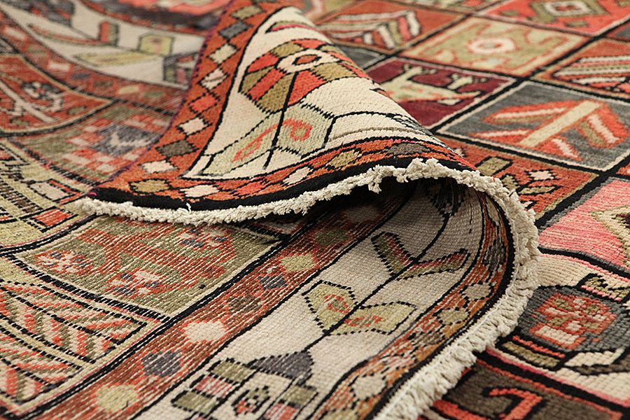 Tapis Bakhtiari: Les nomades Bakhtiar habitent dans les montagnes Zagros à l’ouest de la ville d’Isfahan autour de la ville de Shar-e-kurd. Leurs tapis sont connus pour leurs dessins de différents carrés répétitifs dans lesquels sont représentés des fleurs ou des animaux, d’où l’origine du nom de ce motif « jardin » (Khesti). Leurs tapis sont aussi très résistants avec un tissage en laine perse de très bonne qualité issue de moutons élevés en haute altitude. Les meilleurs tapis Bakhtiar avec la meilleure densité de nœuds sont les Bibibaff.