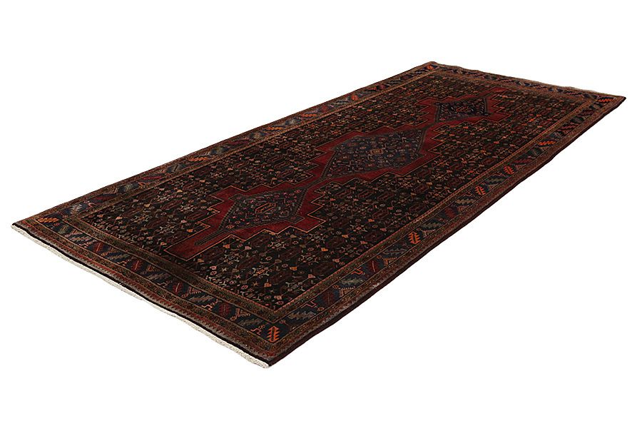 Tapis Hamadan: La ville de Hamadan se trouve au nord-ouest d’Iran à 3ookm ouest de Teheran. C’est une de plus anciennes villes du monde et la sainte Bible se référe à cette ville avec le nom Ekvanata. La ville est un lieu de concentration et de commerce des tapis qui sont tissés à certains villages et villes voisins. Plusieurs tapis se sont vendus avec leurs propres noms par exemple Nahavand, Tuiserkan, Malayer, Hosseinabad, Burchalow, Enjilas, Lilihan, Khamse et Zanjan. Les plus simples tapis de la région sont vendus avec le nom Hamadan. Chaque village a son tissage pour les tapis avec ses dessins et ses couleurs. Une laine de très bonne qualité est utilisée à la plupart des tapis Hamadan à des couleurs différentes. Les couleurs sont naturelles et dominent des nuances différentes du bleu indigo et avec des nuances du rouge.