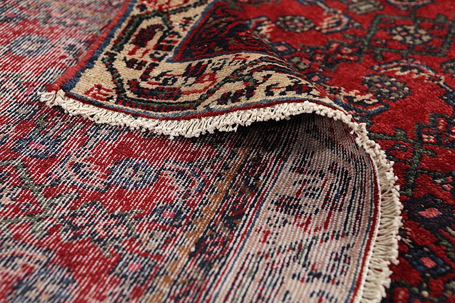 Tapis Hamadan: La ville de Hamadan se trouve au nord-ouest d’Iran à 3ookm ouest de Teheran. C’est une de plus anciennes villes du monde et la sainte Bible se référe à cette ville avec le nom Ekvanata. La ville est un lieu de concentration et de commerce des tapis qui sont tissés à certains villages et villes voisins. Plusieurs tapis se sont vendus avec leurs propres noms par exemple Nahavand, Tuiserkan, Malayer, Hosseinabad, Burchalow, Enjilas, Lilihan, Khamse et Zanjan. Les plus simples tapis de la région sont vendus avec le nom Hamadan. Chaque village a son tissage pour les tapis avec ses dessins et ses couleurs. Une laine de très bonne qualité est utilisée à la plupart des tapis Hamadan à des couleurs différentes. Les couleurs sont naturelles et dominent des nuances différentes du bleu indigo et avec des nuances du rouge.