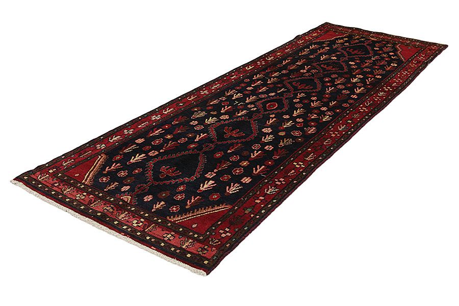 Tapis Hamadan: La ville de Hamadan se trouve au nord-ouest d’Iran à 3ookm ouest de Teheran. C’est une de plus anciennes villes du monde et la sainte Bible se référe à cette ville avec le nom Ekvanata. La ville est un lieu de concentration et de commerce des tapis qui sont tissés à certains villages et villes voisins. Plusieurs tapis se sont vendus avec leurs propres noms par exemple Nahavand, Tuiserkan, Malayer, Hosseinabad, Burchalow, Enjilas, Lilihan, Khamse et Zanjan. Les plus simples tapis de la région sont vendus avec le nom Hamadan. Chaque village a son tissage pour les tapis avec ses dessins et ses couleurs. Une laine de très bonne qualité est utilisée à la plupart des tapis Hamadan à des couleurs différentes. Les couleurs sont naturelles et dominent des nuances différentes du bleu indigo et avec des nuances du rouge.