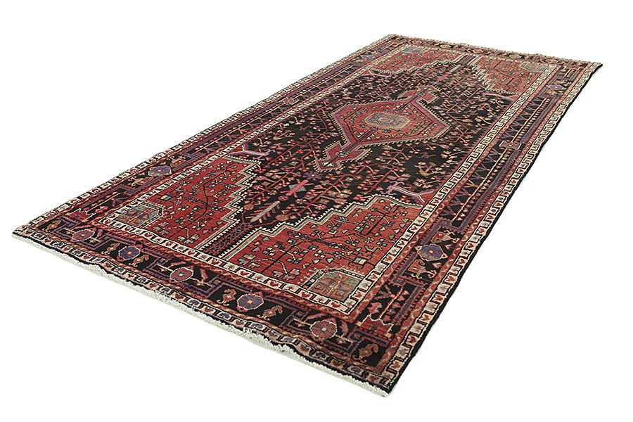 Tapis Hamadan: La ville de Hamadan se trouve au nord-ouest d’Iran à 3ookm ouest de Teheran. C’est une de plus anciennes villes du monde et la sainte Bible se référe à cette ville avec le nom Ekvanata. La ville est un lieu de concentration et de commerce des tapis qui sont tissés à certains villages et villes voisins. Plusieurs tapis se sont vendus avec leurs propres noms par exemple Nahavand, Tuiserkan, Malayer, Hosseinabad, Burchalow, Enjilas, Lilihan, Khamse et Zanjan. Les plus simples tapis de la région sont vendus avec le nom Hamadan. Chaque village a son tissage pour les tapis avec ses dessins et ses couleurs. Une laine de très bonne qualité est utilisée à la plupart des tapis Hamadan à des couleurs différentes. Les couleurs sont naturelles et dominent des nuances différentes du bleu indigo et avec des nuances du rouge.