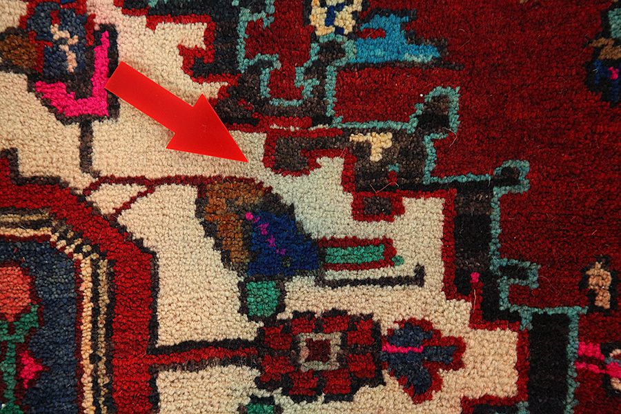 Tapis Abrash: Grâce à leur graisse différente de la laine et la quantité différente du sel pendant le processus de la teinture la laine a une différence absorptivité en ce qui concerne la qualité du couleur. Avant le tissage ce résultat n’est pas visible. Pendant le tissage des séries des nuances de la même couleur sont produits. On appelle cela "Abrash" et il nous montre que les laines ne sont pas traitées avec des matériels chimiques et ils sont laissés à montrer leur aspect naturel et leur originalité. Exemples