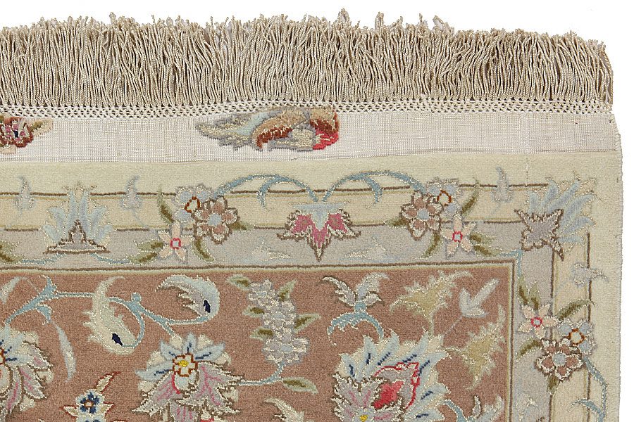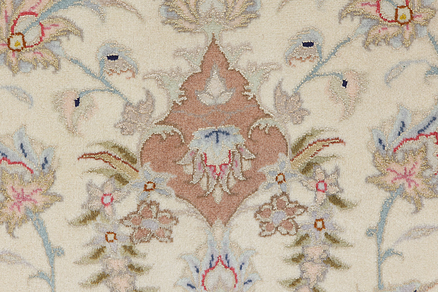 Tapis Tabriz: La ville Tabriz est la capitale de la province Azerbaïjan au sud-ouest d’Iran. Jusqu’à la fin de l’époque des caravanes Tabriz était le centre le plus important du commerce et du tissage des tapis. Par ici l’Ouest s’approvisionnait les chefs d’œuvres que des tisseurs renommés et capables tissent. Leurs qualités élevées ont fait les tapis connus aux marchés internationaux. Des atéliers des tapis noués à la main ont été crées où ils tissent de vieux et de nouveaux dessins avec une très grande densité en nœuds avec des matériaux de qualité excellente. La soie et la laine qualintative fine font les tapis de première classe. C’est la seule ville de Perse qui produit un si grand volume et et une si grande variété des tapis. Les tapis Tabriz sont impossants et ils ont leur style et leur originalité avec ou sans médaillon, avec des dessins pleins de l’imagination et de l’unicité des fleurs, des répresentations, des strophes, des poèmes à des couleurs comme le beige, le bleu et le rouge