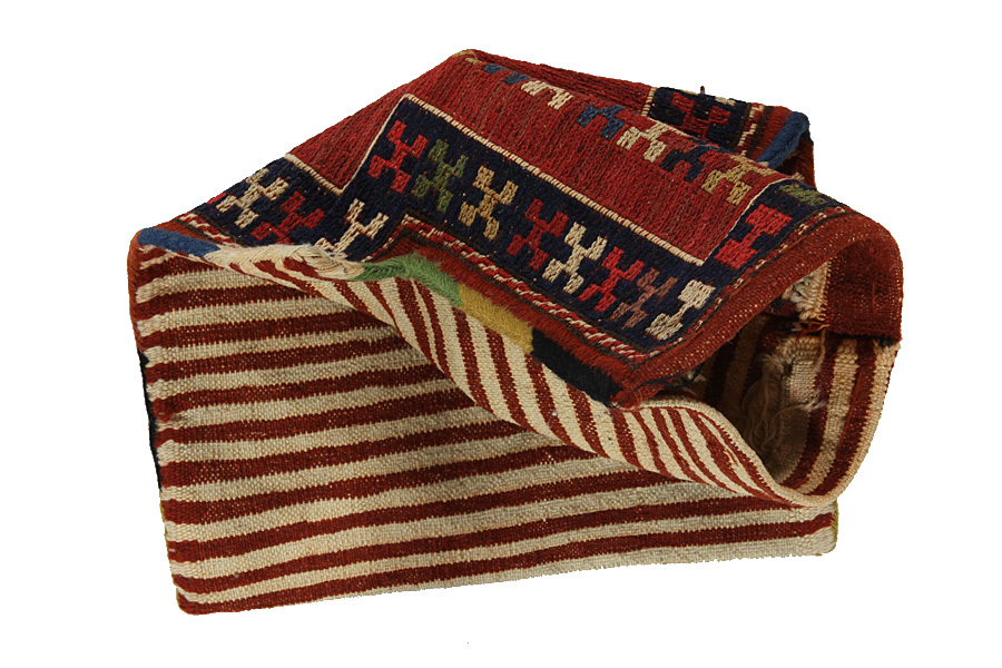 Tapis Saddle Bag: Les sacs pour selle à cheval sont faits par les Nomades pour les utiliser eux-mêmes. Il existe 2 types de sacs :les sacs pour selle-kilim et des sacs pour selle noués. Le coté avant d’un sac est soit noué avec des nœuds (comme un tapis) soit utilise des techniques différentes. Le côté derrière est souvent noué alors que pour le centre du sac des techniques différentes (comme par exemple la technique Soumak) sont appliquées. Les couleurs avec lesquelles les sacs sont teints sont toutes naturelles et faites par les Nomades eux-mêmes. Les voyageurs utilisaient ces sacs pour transporter des denrées quotidiennes à cheval ou à dos d' âne. Il s'agit d'une pièce d’art exceptionnelle qui peut apporter une ambiance orientale unique chez-vous. Ces sacs peuvent être utilisés comme coussins d'assise, comme poufs au sol (par exemple près de la cheminée) ou pour décorer vos murs. De plus ces petits sacs pour selle de cheval peuvent être utilisés pour stocker vos journaux ou vos magazines.