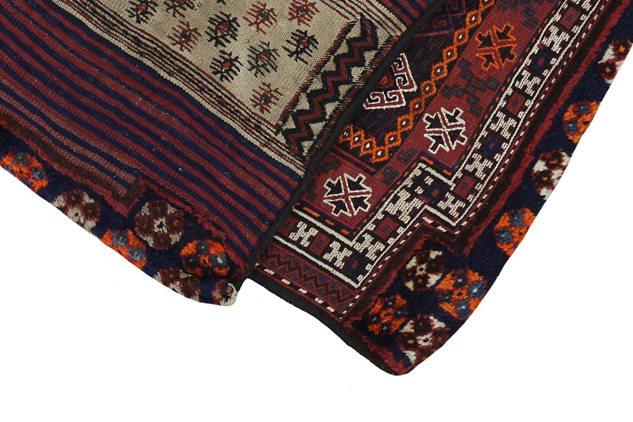 Tissé à l’un ou à tous les deux côtés du largeur du tapis: À quelques tapis les nomades à une côté tissent des franges à un kilim étroit qu’ils les tissent des petites tresses. C’est la technique des tisseurs différents pour reussir une meilleure résistance ou pour montrer leur habilété. Exemples