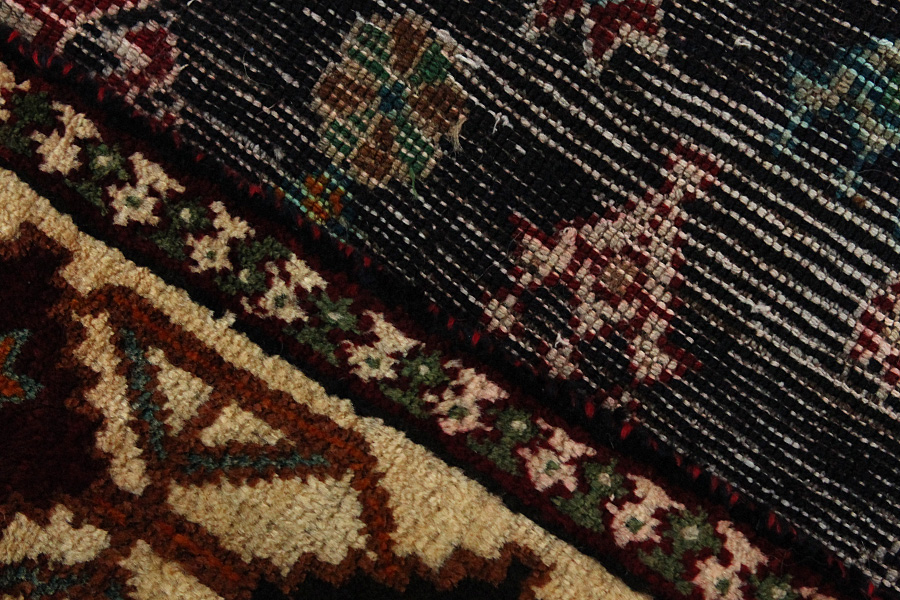 Tapis Abrash: Grâce à leur graisse différente de la laine et la quantité différente du sel pendant le processus de la teinture la laine a une différence absorptivité en ce qui concerne la qualité du couleur. Avant le tissage ce résultat n’est pas visible. Pendant le tissage des séries des nuances de la même couleur sont produits. On appelle cela "Abrash" et il nous montre que les laines ne sont pas traitées avec des matériels chimiques et ils sont laissés à montrer leur aspect naturel et leur originalité. Exemples